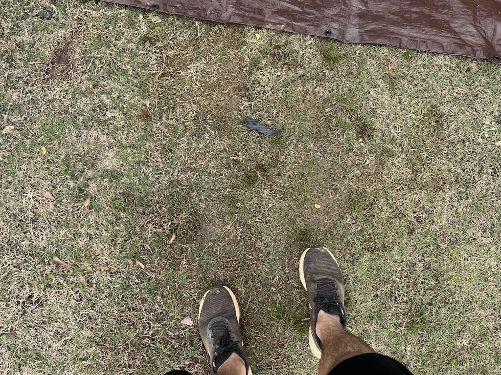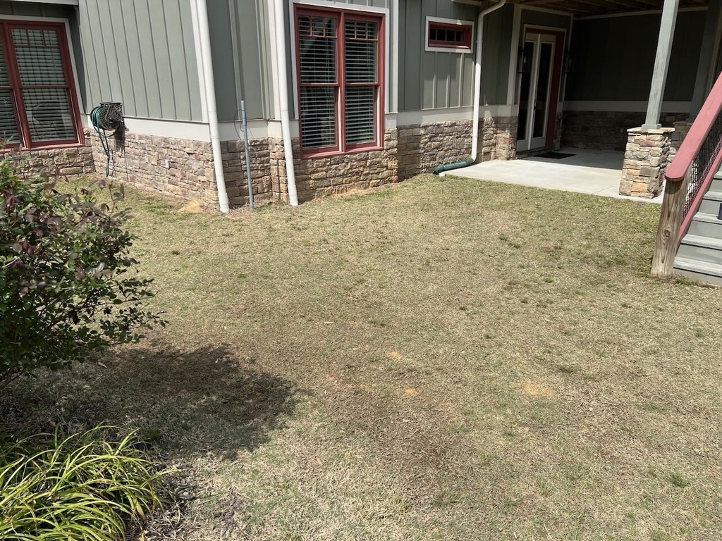 at the bottom of our back deck staircase is a ~12x12 foot patch of grass that stays wet for several days after each rain. this is annoying and i was recommended by YouTube to dig holes and back fill them with rock for better drainage.