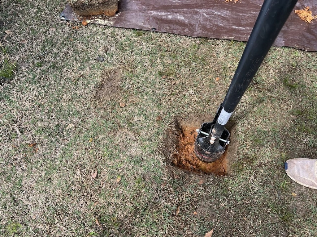 i dug at least 5 of these holes, carefully cutting out a piece of grass cake for the top cap replacement later.