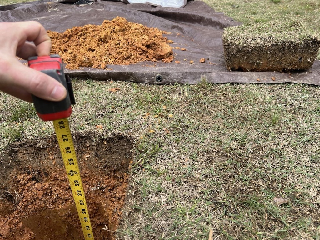 with my shovel and post hole digger i created a 1x1 foot hole, going 2+ feet deep.