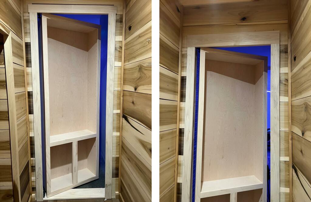 i considered building one myself but let's be honest: not enough skills. plus the key differentiator between doors and hidden doors is that the hinges have to be very strong to prevent sagging. so i found one we liked on Hideaway Doors and pulled the trigger - $2,329.47. ouch!