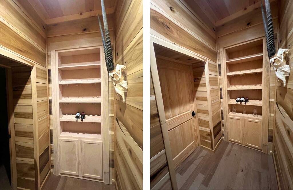there were cheaper options but we wanted book shelf features, wine rack features, specific species of wood (cedar, poplar) to match our basement wall and trim, and of course 8 foot height.